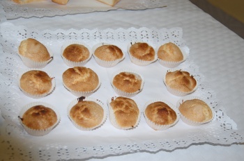 Separamos los moldes de las magdalenas y vamos vertiendo la masa en ellos. Hornear durante 15 minutos con el horno precalentado a 180º. Al sacarlas del horno las rociamos con un poco de azúcar.